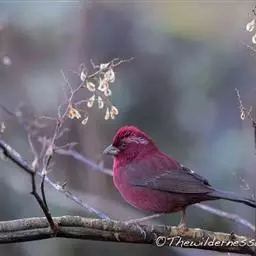 酒红朱雀小型鸟类,体长13~15厘米。雄鸟通体深红色,头部深朱红或棕红色,下背和腰玫瑰红色,…