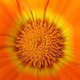 头状花序径约6cm,舌状花基部黄色,外有白、雪青、深红、玫瑰红、黄褐等色圈,管状花紫褐色;花期4-6月。