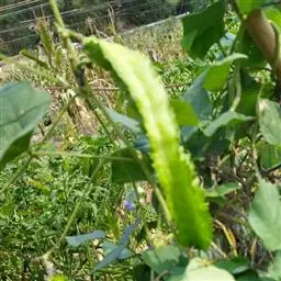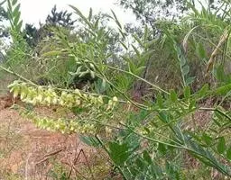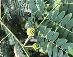 羽状复叶长8-14厘米,密集有19-41片小叶,托叶线形,长约1.5厘米,中部以下与叶柄基部贴生,疏被白色短柔毛;叶柄与叶轴疏被长柔毛,干后卷曲,宿存,小叶密生;几无小叶柄;叶片长圆形、卵形或几圆形,长3-11毫米,宽2-6毫米,先端圆,较少截平或微凹,基部显著偏斜,上面深绿色,下面灰白色,两面皆无毛。