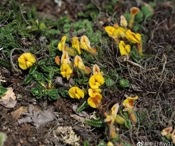 川滇雀儿豆,是双子叶植物纲、豆科垫状草本,植丛高10-20厘米,茎基木质,长而匍匐,粗壮而多分枝,直径可达2.5厘米,枝皮红棕色,分枝上部具密集的宿存叶柄与托叶,荚果长椭圆形,长2.5-3.5厘米,宽约1厘米,革质,微扁,无毛,花期7月,果期8月。