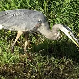 大蓝鹭是鹳形目鹭科的鸟类。共有5个亚种,体长137厘米。全身大部分羽毛呈灰蓝色羽毛,…