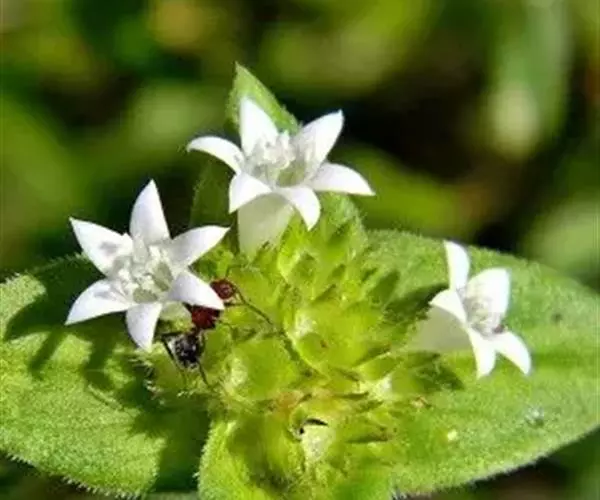 一年生匍匐或近直立草本,长可至80余厘米或过之;主根近白色。茎近圆柱形,被硬毛,节上无不定根,疏分枝。叶厚纸质,卵形、椭圆形或披针形,长1-5厘米或过之,顶端通常短尖,钝头,基部渐狭,两面粗糙,边上有缘毛;叶柄长约5-10毫米;托叶鞘状,顶部截平,边缘有数条长约2-5毫米的刚毛。头状花序有花多朵,顶生,几无总梗,总梗顶端有1或2对叶状总苞,分为2对时,则里面1对较小,总苞片阔卵形;花6或5数;萼长2.5-3.5毫米,萼管顶部缢缩,萼裂片披针形或狭披针形,长约为萼管的2倍,被缘毛;花冠白色,漏斗状或高脚碟状,管长2-8毫米,里面基部有一环白色长毛,裂片6,盛开时星状展开,偶有熏衣草的气味;雄蕊6,伸出或不伸出;子房通常有3心皮,柱头头状,3裂。分果瓣3 (-6),长2-3.5毫米,长圆形至倒卵形,背部密覆小乳凸和糙伏毛,腹面有一条狭沟槽,基部微凹。花期春夏间。