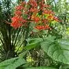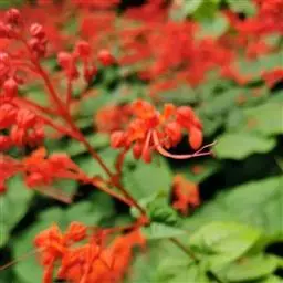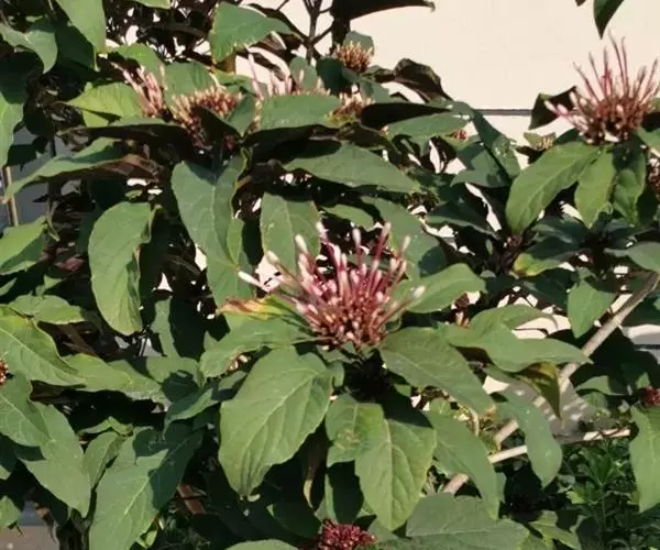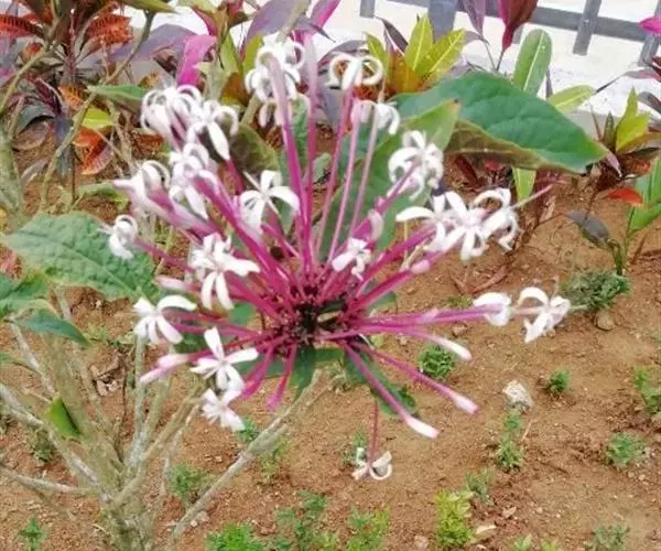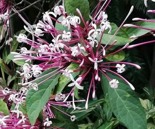 烟火树 烟火树的花形奇特,十分美丽,是优良的园林绿化树种;它还具有药用价值,其根具有舒肝理气、益肾强精、养胃和中、补血调经等功效。主治肝气不舒、脘腹涨满、月经不调等症。烟火树是马鞭草科大青属小灌木,原产非洲及太平洋群岛等地,在中国也有零星分布。烟火树株型美观,叶色秀美、花色绚丽多彩,花蕊翩翩起舞。烟火树除具观赏性外,随着科学进步它的药用价值及营养保健作用。