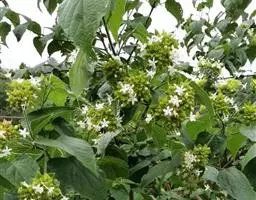 臭茉莉唇是形科大青属植物,臭茉莉体被毛较密,伞房状聚伞花序较密集,萼裂片披针形,花冠白色或淡红色,…