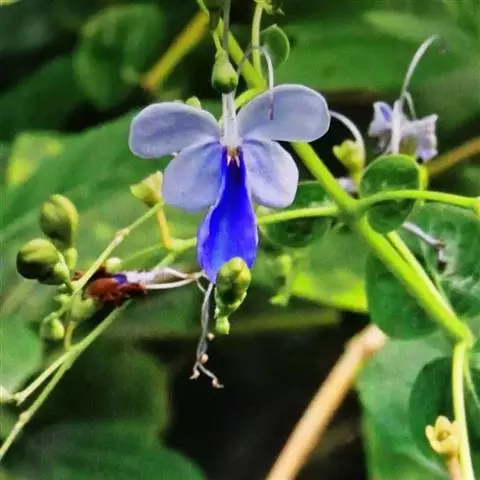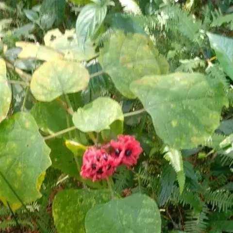 红萼龙吐珠马鞭草科大青属常绿木质藤本。叶对生,纸质,具柄,卵状椭圆形,全缘,先端渐尖,基部近圆形。…