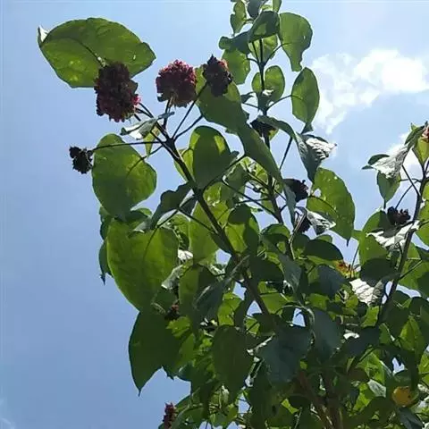 烟火树 Merr.)是唇形科、大青属常绿灌木或小乔木,株高可达4米。幼枝方形,墨绿色。叶对生,…