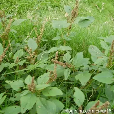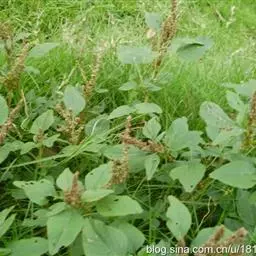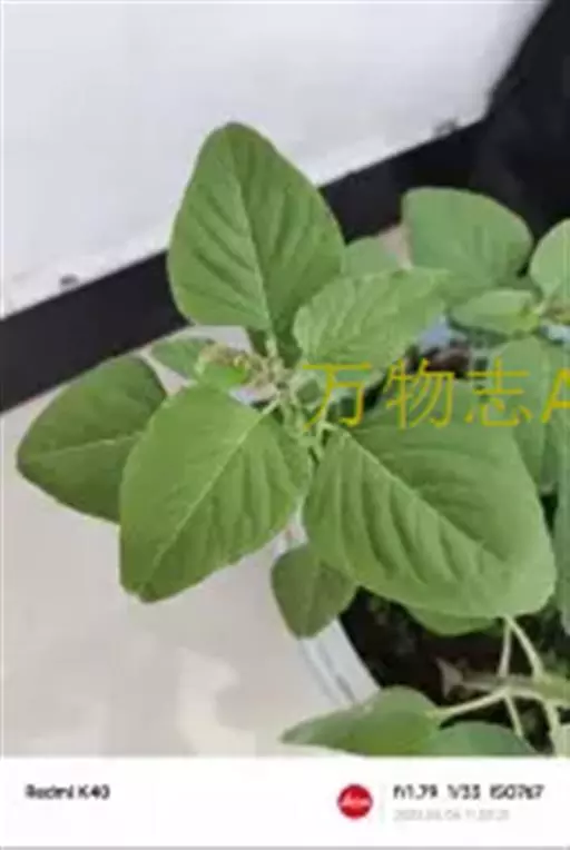 一年生草本,高40~80厘米,全株无毛。茎直立,稍分歧,具条棱,绿色或 绿苋 带紫色、叶互生,有柄,柄长3~6厘米;叶片卵形或卵状椭圆形,长2~6厘米,宽1.5~4.5厘米,基部广楔形,先端凹缺,并具/J,束TJ尖.全缘或微波状缘,表面绿色,背面色淡,两面均无毛。花单性或杂性,腋生穗状花序再形成顶生或侧生直立的圆锥花序、苞小,于膜质.披针形;花被片3,膜质、长圆形至倒披针形,长1.5~2.0毫米、内弯,比果实短,先端尖,背部具1条绿色隆起的中脉;雄蕊3,比花被片短;柱头3,具细齿状毛。胞果近扁球形,表面极皱缩,不开裂。种子圆形,稍扁,黑色至黑褐色,有光泽,径约1毫米,具薄而锐的环状边缘。花期7—8月,果期8—9月。