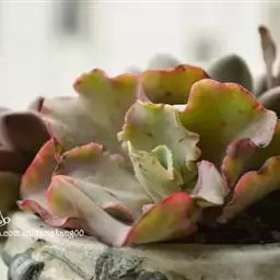 高砂之翁是景天科,拟石莲花属的多肉植物。特征是其边缘呈大波浪卷形的宽大叶片,…