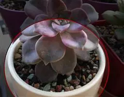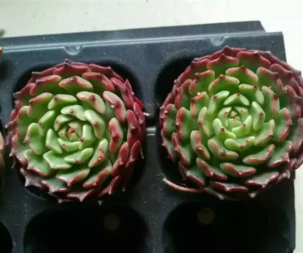 叶片呈莲座状排列,叶色为红绿色,叶片边缘和背面都为红色,叶尖有小尖尖。