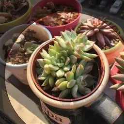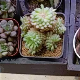 养护方法:美尼月迫喜光照,为春秋型种多肉植物,生长适温为10-25度,比较容易养活,耐干旱,不耐寒。春秋季节是它的生长期,可以全日照,夏季高温要适当用遮阳伞遮阳通风,冬季可以全日照养护。对水分的需求不是很大,每个月浇2次水就可以,不要过度浇水。 美尼月迫的繁殖方式有扦插、分株、砍头、播种等几种方式。