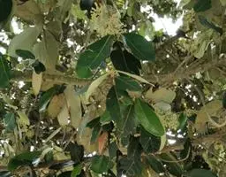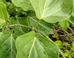 花朵向下悬垂。叶有柄,互生,集株端,长椭圆形状,先端渐尖,粗钝锯齿缘,主叶脉掌状,有五至七条。绿色。全年出叶,尤以3-8月为盛。