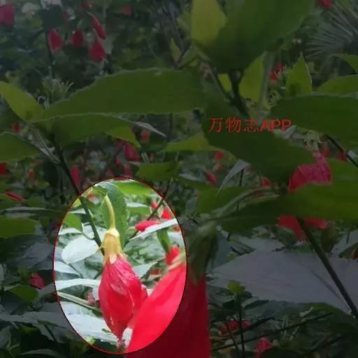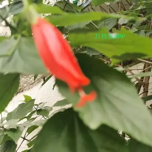 悬铃花,拉丁学名(Malvaviscus arboreus Cav.),属常绿小灌木。外型略似朱槿,高30-60cm,鲜红色花朵,较为奇特,花期终年、花量多。