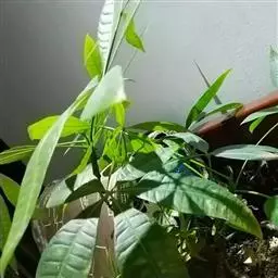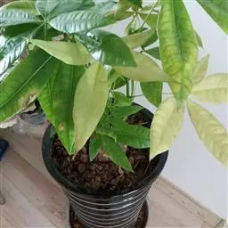 瓜栗 Walp. ),俗称发财树,木棉科小乔木,高4-5米,树冠较松散,幼枝栗褐色,无毛。小叶具…