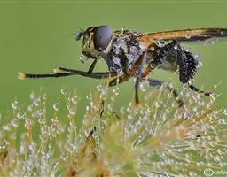 8.大头金蝇传粉形态学、行为学研究 试验研究表明,大头金蝇主要依靠身体鬃、毛携带花粉,并且身体不同部位的花粉量不同。其中头部的喙、颊区黏附较多花粉,胸部腹侧附着花粉量占到整个身体携带花粉量的20%左右。3对足中前足的花粉量最多。