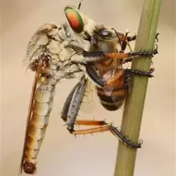 10.大头金蝇授粉对油菜产量的影响 油菜在不同授粉方式下,释放大头金蝇成虫授粉与人工授粉、蜜蜂授粉效果之间差异不显著,但明显好于家蝇授粉效果,与相同密度条件下两种蝇类混合释放有明显差异,且有交互作用。前期释放比后期释放大头金蝇授粉效果明显。释放大头金蝇蛹,待其羽化后和蜜蜂授粉比较,油菜果荚数和果荚长度间有显著差异,而千粒重和主花序角果数间没有显著差异。仅有蜜蜂授粉的油菜母本的全株角果数低,说明大头金蝇和蜜蜂在访问油菜不同性别花的情况有所差异。 通过系统研究大头金蝇的人工饲养、授粉行为学基础、授粉效果。结果表明,大头金蝇成虫具有较强地抗逆能力,能够进行规模化人工饲养。特有的授粉形态和授粉行为,以及与其它昆虫的飞行能力、授粉效果比较,证明大头金蝇可以满足设施农业授粉的需要,极具推广利用价值。
