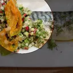 8、在上面涂上一层洋葱黑椒番茄酱,洒一点盐在上面,再洒点黑胡椒碎