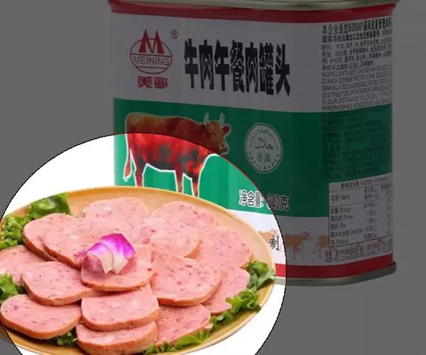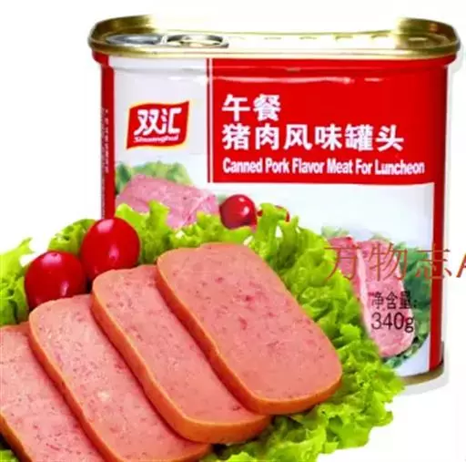 午餐肉:一种罐装压缩肉糜,通常原料是猪肉或牛肉等。把午餐肉切成片,可以用来夹面包食用,餐蛋面热食也很美味。 这种罐装食品方便食用,由于将猪肉放进密封的罐中,所以也易于保存。通常在野餐时食用。军队中,午餐肉是必备的军需物品。