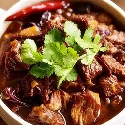 麻辣牛肉是一道四川省的传统名菜,属于川菜系,制作原料主要有牛肉、豆腐、豌豆等,此菜色泽褐红,麻辣鲜香,…
