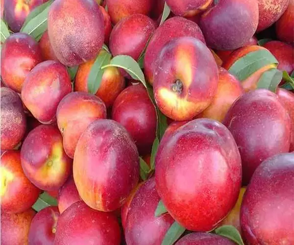 红芒果油桃树势中庸,因其果面红色,果形奇特像芒果而得名,优质、特早熟、甜香型黄肉油桃品种。中国 农业科学院郑州果树研究所培育。