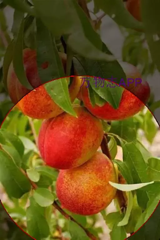 油桃 色点或晕,不易剥离。果肉白色,肉质细,硬溶质,味甜,风味较浓,黏核,鲜核重82克。含可溶性固形物7.4%~10.5%,可溶性糖7.0228%,可滴定酸0.3624%,维生素C7.682 8毫克100克。北京地区7月8 ~15日成熟。 树势强健,树冠较大,发枝力强。复花芽较多,占50%。果实7月上中旬采收,果实发育期85天左右。落叶期为10月下旬,年生育期210天左右。树姿半开张,一年生枝绿色,阳面红褐色。叶长椭圆披针形,叶面平展或略有皱,叶基楔形,叶尖渐尖,深绿色,具有光泽,蜜腺肾形,2~5个。花为铃形,雌蕊高于雄蕊,花粉多。该品种为优良的早熟油桃品种,果个大且圆整,风味甜,丰产。多雨年份有少量裂果。