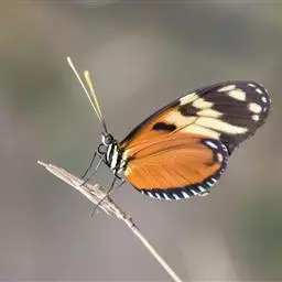 黑脉金斑蝶:翅阔8.6-12.4厘米。雄蝶较雌蝶为大。成年蝶颜色鲜艳,翅膀上有显眼的橙色及黑色斑纹…
