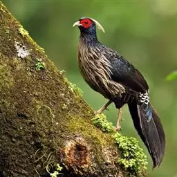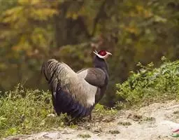蓝鹇是雉科、鹇属一种大型雉类。体长50-80厘米。雄鸟头颈黑色,羽冠白色,有时杂以黑斑;脸红色,…