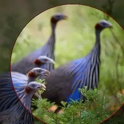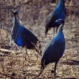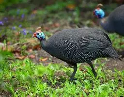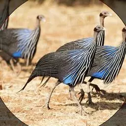 鹫珠鸡:是珠鸡科中体形最大的一种,因头颈部像兀鹫而得名。雌雄羽色相似,为黑色基底上遍布白色点斑,…