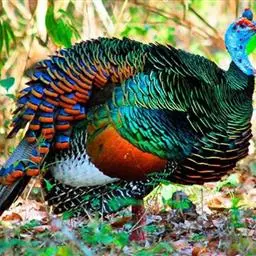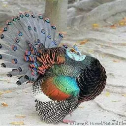 眼斑吐绶鸡:是火鸡科的两种鸟类之一。体型比普通火鸡略小些,体长1米左右,体重2.4-5.4千克,…