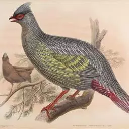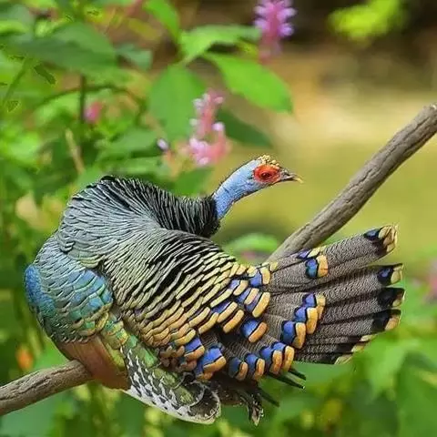 血雉雉科血雉属鸟类,别名血鸡、松花鸡,血雉的雄鸟大覆羽、尾下覆羽、尾上覆羽、脚、头侧、腊膜为红色,…