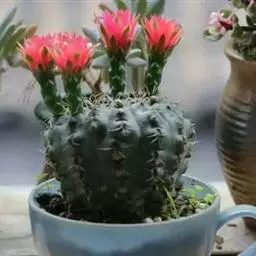 龙王球浓绿茎上具白色带褐晕的波状棱条与多数钩刺,姿态奇异,花大色艳而芳香,既可观茎又可赏花,为仙人掌类的佳品。