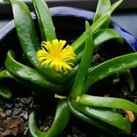 照波,番杏科多肉植物、 此种生长较快,栽培容易,细长的浓绿色叶3厘米左右,开黄色花。…