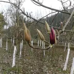 木兰移栽在春天花前或秋天落叶后进行,中小苗需宿土,大苗带土球。木兰喜肥,每年10~11月施人腐熟的堆厩肥作基肥,花后萌芽抽枝期间,追施2~3 次速效氮肥,旱季根际覆盖并适量浇水。翌年可望花繁叶茂。