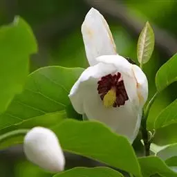 花蕾卵圆形,紫色,花白色或淡紫红色,芳香,直径7-10厘米,密被淡黄色长毛;花先叶开放,直立,芳香,盛开时直径7-8.8厘米;外轮萼状花被片披针形,长15-20毫米,宽2-3毫米,早落;内数轮瓣状花被片12-45,狭长圆状倒卵形,长4-5厘米,宽0.8-1.2厘米,花色多变,白色至紫红色。