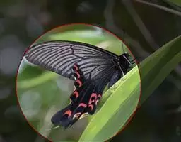 翠叶红颈凤蝶是凤蝶科红颈凤蝶属的一种大型蝴蝶,该物种共有11个亚种。因其脖子上有一圈红色的绒毛,…