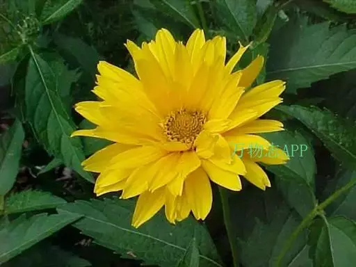 多年生草本,株高70~150cm。茎枝光滑,叶矩圆形或卵状披针形, 上面无毛,下面具柔毛,边缘具粗齿。头状花序,单生;舌状片先端渐尖,黄色。 瘦果 。