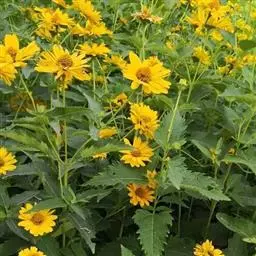 赛菊芋是菊科赛菊芋属多年生草本植物。多分枝;叶对生,长卵圆形,先端圆钝,基部楔形,具长柄,边缘具锯齿,…