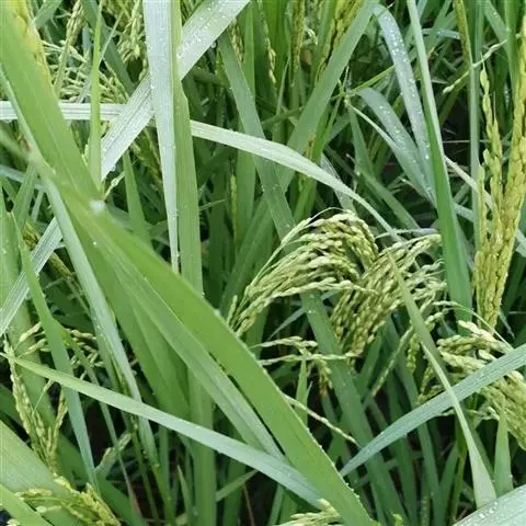 水稻 一年生草本。秆直立,高0.5-1.5米,随品种而异。叶鞘松弛,无毛;叶舌披针形,长10-25毫米,两侧基部下延长成叶鞘边缘,具2枚镰形抱茎的叶耳;叶片线状披针形,长40厘米左右,宽约1厘米,无毛,粗糙。