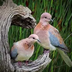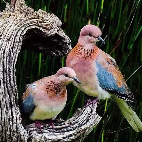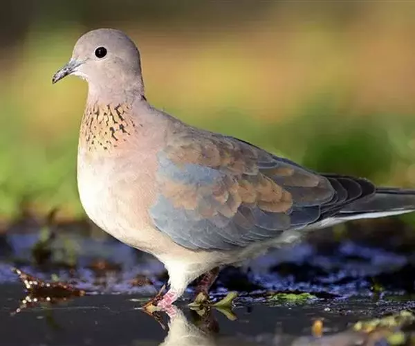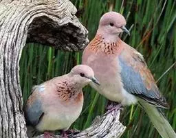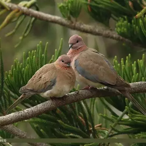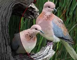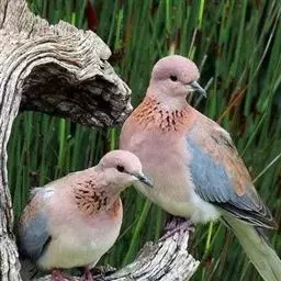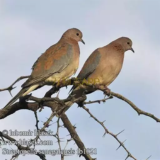 棕斑鸠(学名:Spilopelia senegalensis):体重95-121克,体长250-288毫米。是一种粉褐色斑鸠。尾长而翼短。与灰斑鸠区别在体型较小,无黑色颈环,色彩较深,更似欧斑鸠。无欧斑鸠那种颈部和翼上的图纹,但具带黑色斑点的褐色颈带。外侧尾羽羽端白,具独特的蓝灰色翼斑。虹膜褐色,嘴灰色,脚粉红。