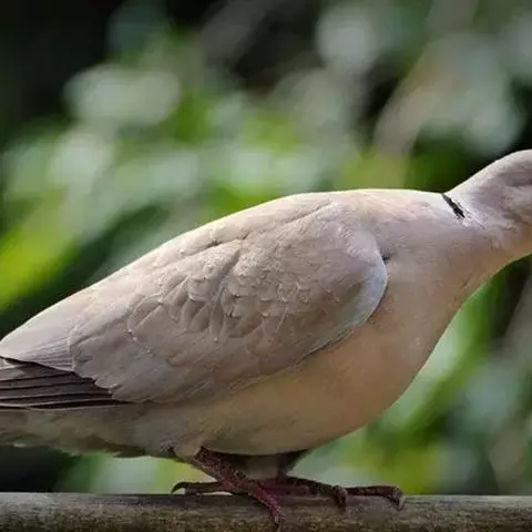 欧斑鸠体长27厘米,是一种体型略小的粉褐色斑鸠。颈侧具多黑白色细纹的斑块,翼覆羽深褐,…