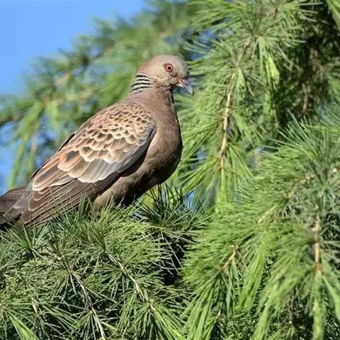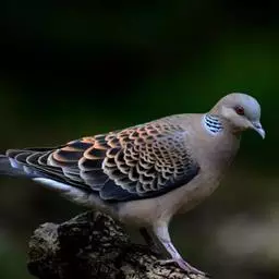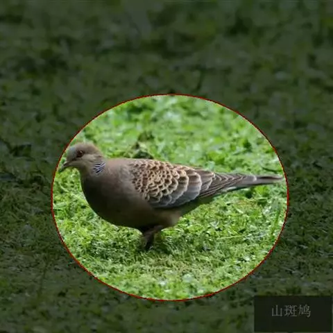 山斑鸠,是鸽形目鸽鸠科斑鸠属鸟类,又名金背斑鸠、棕背斑鸠、山鸠、金背鸠、麒麟斑、麒麟鸠、东方斑鸠、绿斑鸠、山鸽子。山斑鸠颈侧具明显黑白色条纹的块状斑,上体深褐色、具扇贝状斑纹,羽缘棕色,尾羽近黑色,下体多偏粉色。虹膜黄色,喙灰色,脚粉色。山斑鸠是留鸟,在中国常见且分布广泛。此外,还分布于不丹、尼泊尔、巴基斯坦、印度、日本等国。栖息于针阔混交林、季风常绿阔叶林、果园及农耕区,多成对活动于开阔农耕区、村舍、寺院周围及防火林带。取食于地面,主要觅食植物种子、果实、嫩芽等,也吃昆虫。山斑鸠飞翔时鼓翼快速,叫声为反复而低沉的“咕咕咕”声。繁殖期在4-7月,营巢于林中树上,通常一年繁殖2窝,窝卵数2枚,由雌雄亲鸟轮流孵卵,孵化期18~19天。山斑鸠的肉、卵可食,肉入药可益气明目、强筋壮骨,治久病气虚、衰弱无力、两目昏暗等病症。山斑鸠啄食杂草种子,对农田清除杂草有益;但有时也刨食农作物及树的种子。山斑鸠