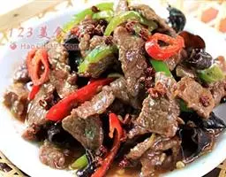小炒黄牛肉是以牛肉、青尖椒、红尖椒等食材制成的一道菜品,香味浓郁,味道鲜美,…