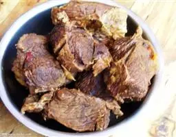 注意:掌握好汤酱油、水、白糖的用量,若水过多则腌制出来的牛肉颜色不好,若白糖过多则易使牛肉在烤制时变焦煳。