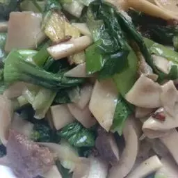 招待外宾时﹐附加烫好的洋松茸﹑芦荀﹑皮豆的炒菜。
