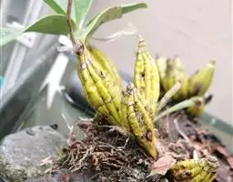 盆裁3年以上的植株或部分秋石斛茎的顶部或基部长有小植株时,可以进行切芽繁殖。选择具有3-4片叶,2-3条根,根长4-5厘米的小植株,从母株上切下,用草木灰或70%的代森锰锌处理伤口,将苗植入盆中即可。汪意要浅植。栽培2年后一般可开花成为商品花。