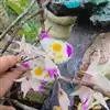 通常选用四壁多孔的塑料或陶瓷花盆,用碳根、泥炭藓、树皮块、木炭块等作盆栽材料。根据兰苗的大小,选择不同规格的花盆,但不宜用大盆栽小苗口上述栽好材料在使用前必需在清水中浸泡1天以上备用。盆底要多垫大瓦片或碎砖块,深度至盆底约1/3处,然后将兰苗放于盆中央,并在一旁插一细竹竿以固定兰苗,再填入其他栽培材料,注意根与根之间用材料隔开。