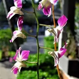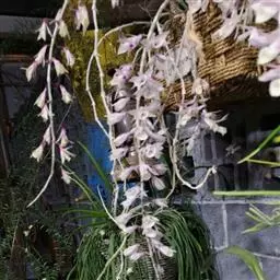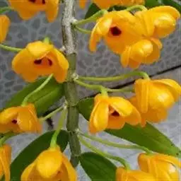 束花石斛是兰科石斛属植物。茎粗厚,肉质,下垂或弯垂,圆柱形,不分枝,具多节。叶二列,互生于整个茎上,…