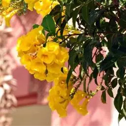 黄钟花可有来做行道树、绿篱、庭园美化、盆栽;可单植、列植、丛植。春天开花成簇,具观花效果。