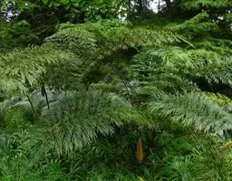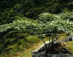 德保苏铁的叶 德保苏铁分布区狭窄,仅产于广西 壮族自治区德保县扶平乡约15.3k㎡的石灰岩山坡;由于人为原因,其数量已从1998年的2000多株锐减到2001年的1085株,尤其是成年植株数量剧减,由此导致年龄结构趋于幼年化,呈现正金字塔的假象;雌雄比从1:10变为1:5,这些现状表明德保苏铁的保护刻不容缓。