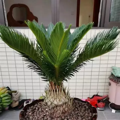 石山苏铁是苏铁科苏铁属植物,树干矮小,基部膨大成卵状茎或盘状茎,上部逐渐缩成圆柱形或卵状圆柱形,…
