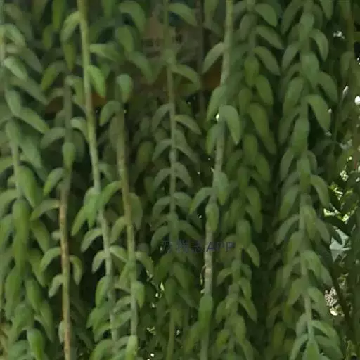 玉缀,别名翡翠景天(Sedum morganianum)景天科景天属(佛甲草属)常绿或半常绿多肉植物。植物匍匐下垂,翠绿色。叶小,多汁,纺锤形,、密密麻麻,似松鼠尾巴。花小,深玫瑰色,春季开放。